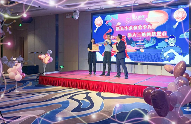 2月6日,北京中投潤天環保科技有限公司2020年度總結表彰大會在北京豐臺順峰酒店圓滿召開,執行董事董婧祎女士、總經理張德群先生等主要領導攜北京公司職工在主會場出席大會。山西裝備制造基地、廣東子公司設立分會場,三地采用抖音直播的形式在線團圓、共迎新春。