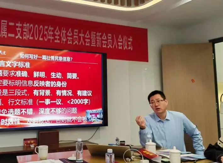 會議還邀請了對社情民意撰寫有著豐富經驗的老會員——經濟一支部副主委王建為大家講述《民建會員如何撰寫好信息》,王建曾經在民建中央、民建北京市委發表過很多重要的文章,他通過大量真實的數據案例,深入淺出地闡述了如何寫好一篇選題準、情況明、分析透、建議實、文字精的高質量社情民意信息。要結合本職工作專業情況,提出領導關注和關心的問題,同時要提出著眼未來、具有前瞻性的意見,也要立足當前、提出具有針對性的意見,更要回顧過去、從制度機制方面提出反思性的信息。會員們紛紛表示受益匪淺,在日后的政治生活中將把理論結合實際、用知識武裝頭腦,不斷提高自己的履職能力水平。