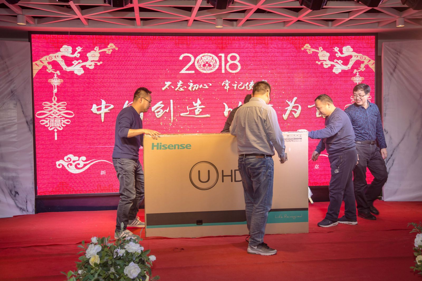 表彰大會上,潤天員工各展絕活,奉獻了精彩紛呈的文藝表演。在派獎環節,公司為辛勤付出的潤天人送上了豐厚獎勵,囊括了75寸曲面電視、iphoneX手機、小米凈水器和平衡車、千元紅包及高檔電壓力鍋等,現場氣氛熱烈,歌聲、笑聲、掌聲連連。