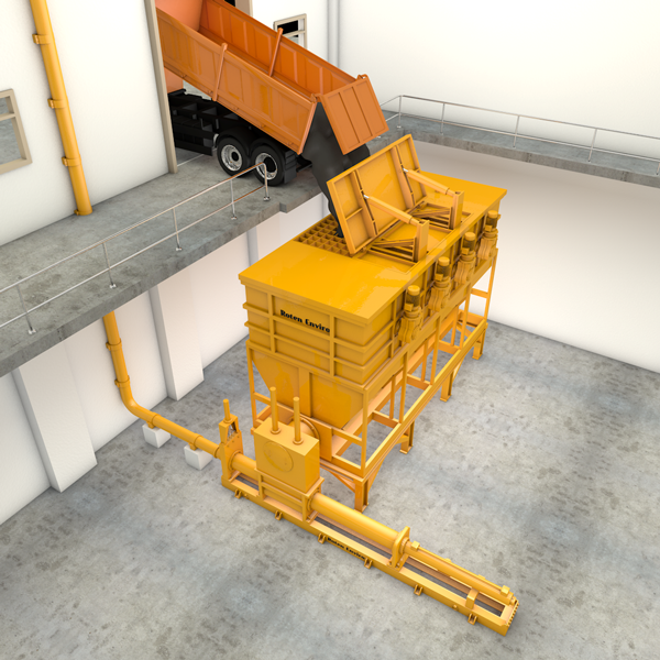 RCH系列斜底均漿倉由自動液壓倉蓋、下沉式隔柵、傾斜倉底、攪拌軸、出料螺旋、料位計等部分組成。配合卸車功能使用的自動液壓倉蓋,卸車時自動開啟,平時為關閉狀態,密閉性好可防止物料中臭氣外溢污染環境。分區攪拌的形式可防止物料因儲存造成的板結、離析、沉淀。出料螺旋可直接與RPA單柱塞固體泵及雙柱塞固體泵相連,在滿足基本使用功能的前提下降低總投資。