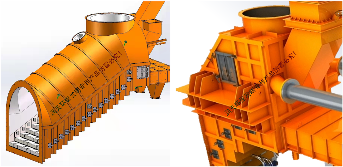 半固態廢物從預燃爐尾部管道通過柱塞泵全自動、全密閉、定量給料進入爐內。