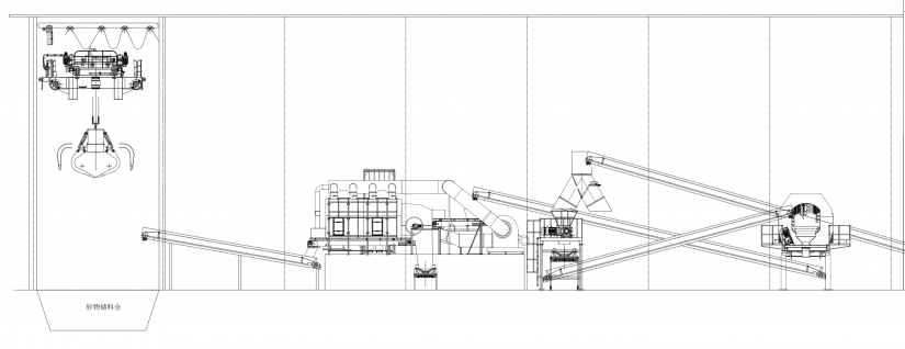 本工藝通過發酵、破碎、風選、篩分、擠壓等工序將一般生活垃圾加工成RDF,作為替代燃料供應水泥、鋼鐵、發電等高耗能工業。在垃圾能源化的同時促進煤炭替代,節能減排,助力雙碳目標,實現工業綠色發展。本工藝滿足 22t/h 的生產能力。一級粗破碎機:適用于復雜工況下的粗破碎機,獨特的刀型設計與排列組合,獨立軸的變速變相運行程序,刀具獨特的鍛造工藝與熱處理工藝以及與物料接觸區域增加耐磨層,解決了目前市場同類產品遇到的各種痛點問題,諸如機器卡死、出料尺寸大、纏繞堵料、產能低、刀具磨損快等,有效降低客戶停機成本、運行維護成本。雙軸剪切破碎機:采用電機+行星減速機驅動模式,轉速低,扭矩大,可用于強度高,物料 復雜的破碎工作,尤其對于皮革紡織柔性物料具有很好適用性;簡單的動力 傳動模式,極大降低了設備故障,確保破碎機的可靠持久運行,具體表現為 產量的穩定和出料尺寸波動范圍小。磁選機:分選出不具有熱值但具有高回收價值的鐵金屬物質,同時避免鐵影響后 段工序質量,如細破碎、成型,甚至影響成品燃料的品質。風選:輕重物質分選效果好,能分選出非可燃性物質,如石頭、石塊及金屬等。擠壓機:將通過液壓提供的高壓力及擠壓腔將風后的可燃物;進行擠壓,進一步降低可燃物含水率。